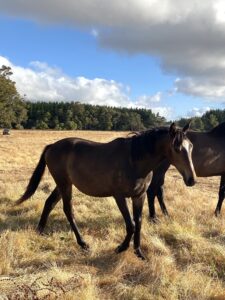 First Cross bay filly, born 27/10/2024. Beautiful , quiet and trainable. Black Coat is the mother of three Jesters Flat horses.